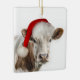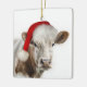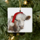 Christmas Hereford Cow With Santa Hat Julgransprydnad Keramik