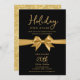 Christmas Holiday Open House Gold Bow Black Inbjudningar