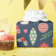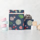 A joyful mix of hand-drawn holiday icons — stockings, candy canes, berries, stars, ornaments, and more — scattered over a rich midnight blue background. Fun, bright, and perfect for wrapping any gift.