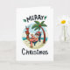 Funny Christmas design featuring an illustration of Santa Claus relaxing at the beach under a palm tree on a little island. A perfect match for Christmas in July as well as for real Christmas in December.