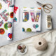 Färgfull alfabet brev , rött vitt blått juldesign med färg, ljusa 3D-stenar och ursprungliga akrylmålningar, Jultomten som spelar fiolin i snövintvätten, gult måne,stjärnor, uggla, prydnadsföremål för blommigt, vinterväxter, Julgran, ballonger, hullbär i ljust rött,grönt,vitt,blått,gult färg av Bulgan Lumini (c)