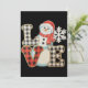 Christmas Love Cute Snowman Buffalo Plaid Winter Julkort
