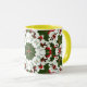 Det här är en jul mugg. Den har en sofistikerad utformning med en harmonisk kombination av rött och grönt. Ha en lycklig-jul.