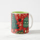 Det här är en jul mugg. Den har en sofistikerad utformning med en harmonisk kombination av rött och grönt. Ha en lycklig-jul.