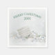 Elegant silver and white ornaments in snow with Silent Night sheet music for holiday party