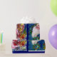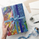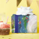 Färgfull, vit och konstnärlig akrylmålning ,Tomten spelar harp i månljuset, uggla, blommigt, prydnadsföremål, vinterväxter, barn leksaker, hullbär i ljust rött,grönt,vitt,gult färg. av Bulgan Lumini (c)