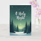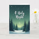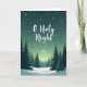 This digital art shows a peaceful winter night with the words "O Holy Night" in fancy white writing. The background changes from dark blue to light green. Under the sky, there's a quiet forest with tall pine trees and snowy ground in blue and grey colors. The scene feels calm and hopeful with gentle light and lots of white stars shining. A big, bright star stands out, giving a golden glow and guiding the eye. It looks like a magical, comforting presence in the sky. This card captures the beauty and wonder of Christmas night beautifully. It's perfect for spreading holiday cheer with its peaceful and magical vibes. 🎅🏼🎄🎁