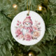 This ceramic Christmas ornament is shown with a cute festive snowman art print.