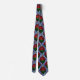 A pretty red and green bauble ornament against a blue stained glass style pattern decorates this seasonal necktie. AI-generated by IveyCottage.