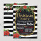 CHRISTMAS PARTY:s inbjudan, julinbjudan, svart vitt rand, blommigt