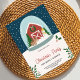 Christmas party invitation with a cozy barn, snow globe design, and festive elements. Greenery decorates the corners, offering a warm and cheerful tone.