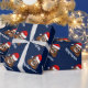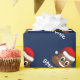 Personlig Cute lycklig jul/Santa poo emoji christmas emoji med röd julhatt på marin bakgrund med God jul-text som är papper.