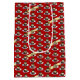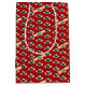A Christmas pudding pattern on a gift bag. Use "Personalize this template" to change the "Merry Christmas!" text and create a unique, customized xmas bag. Featuring my original drawing in a retro, pixel art style, of a pudding, drizzled in brandy sauce and decorated with holly and berries, sitting on a white plate.