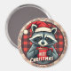 A charming raccoon dressed in a Santa hat holds a steaming mug of cocoa before a red buffalo plaid backdrop, capturing the cozy spirit of a rustic woodland Christmas. The combination of festive red, soft gray fur, and classic flannel pattern brings warmth and nostalgia to the holiday season. With its blend of whimsy and modern country style, this cheerful design perfectly embodies the charm of winter mornings and Christmas gatherings. AI generated artwork.