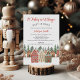 Sweet Christmas theme it takes a village baby shower themed baby shower invitation featuring a village and pine tree forest. This Christmas village theme baby shower invitation also features some snow.