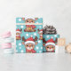 Wish people a Merry Christmas with this cute cartoon reindeer. This adorable festive animal is wearing a red and white Santa hat, a stripy red scarf and a little yellow bell. He has a red nose and is sitting in the snow.