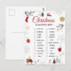 Festive Christmas scavenger hunt checklist artwork with a clean white background and charming holiday illustrations. Designed with elegant red cursive typography, surrounded by cozy winter elements like evergreen branches, snowflakes, houses, trees, a snowman, and warm holiday details. The balanced layout creates a joyful seasonal atmosphere perfect for family-friendly celebrations. All text and images are fully editable, allowing easy changes to match any style or preference.