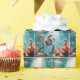 A sea turtle wearing a Santa hat swims among candy canes, coral, and seahorses in a festively decorated underwater scene
