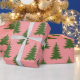 Seamless pattern with a retro Christmas tree. Festive winter pattern with pink background for wrapping paper or textiles.