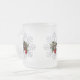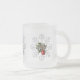 Christmas Snowflake And Shy Red Berry Frosted Glass Coffee Mug. A beautiful, delicate snowflake glistens in winter’s glow, gently resting on a bright red berry peeping through the frost. Sparkling softly, it whispers warmth and joy, Merry Christmas to all.