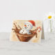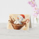 A cheerful snowman in a Santa hat enjoys splashing in a chocolate martini, complemented by a candy cane and cinnamon sticks, in this festive watercolor scene