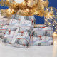 A cheerful snowman holding a bright red shovel stands on a picturesque snowy path, glittering with delicate snowflakes in the enchanting winter woods.