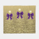 Christmas Sparkling Trees Gold Faux Purple Bow Fleecefilt