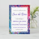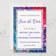 Planerar du ett festligt bröllop eller firande? Då blir snyggten Spara datum ett underbart sätt att informera gästerna. Den här färgstarka, icke-traditionella festdesignen är en levande abstrakt mönster övertäckt med stjärnor. På motsatt sida står ett subtilt mönster som säger SPARA DATUM. All platshållartext är fullt ANPASSADE, så att du kan ersätta med dina egna uppgifter. En del av CHRISTMAS STARS-samlingen med Berean Design, där det finns motsvarande kontorsmaterial, presenter och hemdekanter. Finns även i GRÖNT.