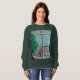 This sweatshirt features a drawing of a deer peaking through the winter window