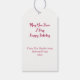 A lovely green evergreen pine tree in the woods, all dressed up with pink Christmas baubles, decorative poinsettia and ribbon. Of course, this whimsical holiday tree must appear with a glorious pink background in the falling snow. Our imaginary scene is from a vintage watercolor design and comes with the greeting, "Merry Christmas" on the front of these nice gift tags. On the reverse side is "May You Have A Very Happy Holiday" which can also be edited. Be sure to change the example names and date to your choices.