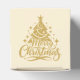 This favor gift box has a photo image reminiscent of a currier and Ives painting of a decorated Christmas tree in the window with plenty of snow around. Photo is on all four sides of this favor gift box, and the top has a printed-on gold color Christmas tree vector wishing your recipients a Merry Christmas over a champagne-blush background. Customize this item or buy as is.