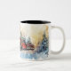 Celebrate the magical and festive holiday season with our personalized photo mug. Our vintage holiday design features a farm landscape of Christmas trees, this Christmas pattern features a farm Christmas scene with a farm, a red barn, children playing and throwing snowballs, Christmas trees and a red vintage truck
