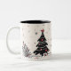 Celebrate the magical and festive holiday season with our personalized photo mug. Our vintage holiday design features a farm landscape of Christmas trees, this Christmas pattern features a farm Christmas scene with a farm, a red barn, children playing and throwing snowballs, Christmas trees and a red vintage truck