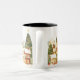 Celebrate the magical and festive holiday season with our personalized photo mug. Our vintage holiday design features a farm landscape of Christmas trees, this Christmas pattern features a farm Christmas scene with a farm, a red barn, children playing and throwing snowballs, Christmas trees and a red vintage truck