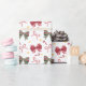 Make your holiday gifts extra special with this charming Christmas wrapping paper featuring a festive pattern of red and green bows, candy canes and golden stars on a crisp white background.