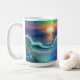 Invite the calm of the sea into your home with this surreal seascape piece, where a beautiful blend of blue hues and opal and jade colored waves meet the warmth of a dreamy sunset.