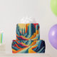 A vibrant and stylized cityscape featuring towering buildings, rolling hills, and a winding road, all rendered in a bold, colorful palette. The image has a graphic and somewhat abstract quality.