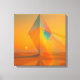 An infinite horizon divides sky and desert in an unreal calm. A transparent prism emerges from the ground, refracting the sunset in a thousand colors, like a portal between dimensions.