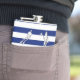 Ett modernt nautiska silver som ett maskerat stil på en marinblå rand mönster-dekoration för en anpassningsbar i bra.