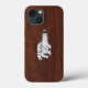 En modern nautisk silverkromad appliqué-stil på en våt mahogny trädgårdsdekoration för en anpassad telefonfodral som alla på eller utanför båten kommer att njuta av.