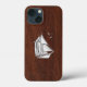 Ett modernt nautiskt silver-krom som applicque stil på en blöt mahogany-trädeka för en anpassningsbar-telefonväska som alla på eller utanför båten kommer att njuta av. Använda länken "Be den här designern" om du vill kontakta oss med dina speciella designförfrågningar eller om du behöver hjälp med något av dina anpassningsprojektbehov.
