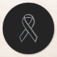 Chrome Stil Black Ribbon Awareness on Black Underlägg Papper Rund