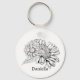 Chrysanthemum Black Line Drawing with Your Name Nyckelring