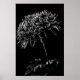 Det här svarta och vita fotot har ett Chrysanthemum i fullt blomning.