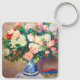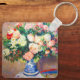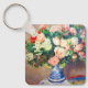 Keychain med Pierre-Auguste Renoirs oljemålning Bouquet av Chrysanthemums och Japans Fläkt (1880). Vackra röda och vita blommor visas i blått och vitt vas. En färglös fläkt ljuger i närheten. En mysigt gåva till klassiska blomkonsthjälpmedel och Franskens konstentusiaster!