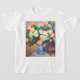 T-Shirt med Pierre-Auguste Renoirs oljemålning Bouquet av Chrysanthemums och Japans Fläkt (1880). Vackra röda och vita blommor visas i blått och vitt vas. En färglös fläkt ljuger i närheten. En mysigt gåva till klassiska blomkonsthjälpmedel och Franskens konstentusiaster!