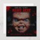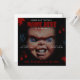 Chucky-docka Blå Röd Blodig Inbjudan. Gör ett statement med denna personliga, tematiska födelsedagsinbjudan. Du kan enkelt skicka den via text eller skriva ut och posta den till dina gäster.