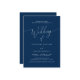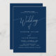 Modern Navy Blue Calligraphy Script, Church Bröllop Ceremony Firande inbjudningskort.