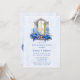 Jag hoppas att du tycker om den blå vattenfärgen struktur med en fönstervy av en kyrka med blåa blommor. Matchning av inbjudningar och bröllopsfester i den här samlingen bröllop.