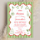 Set against a playful striped background with a squiggle doodle frame, this charming design is perfect for hosting a pasta dinner party, wine night, or girls' night out in celebration of her milestone birthday.